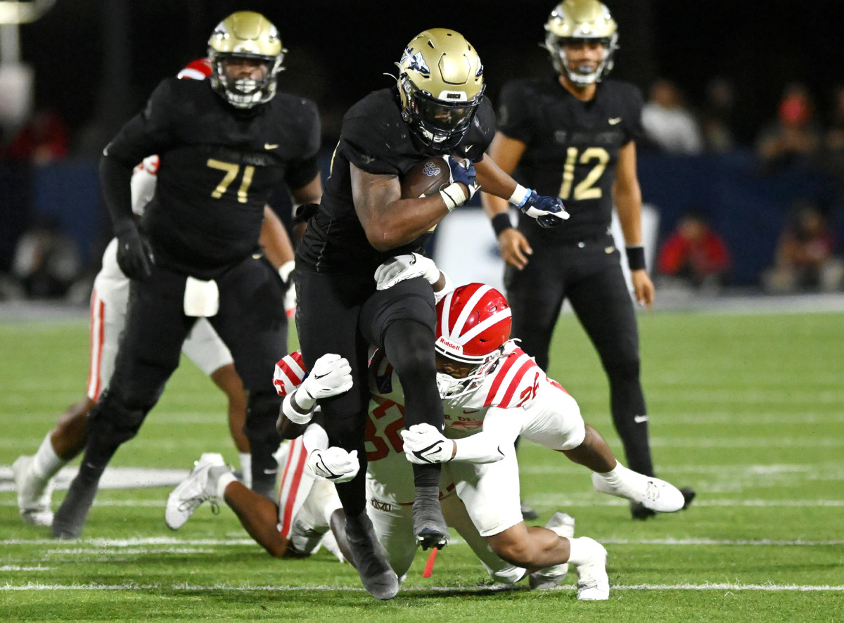 Mater Dei vs. St. John Bosco CIFSS D1Finals Action at Rose Bowl , How many future college players will be on the.